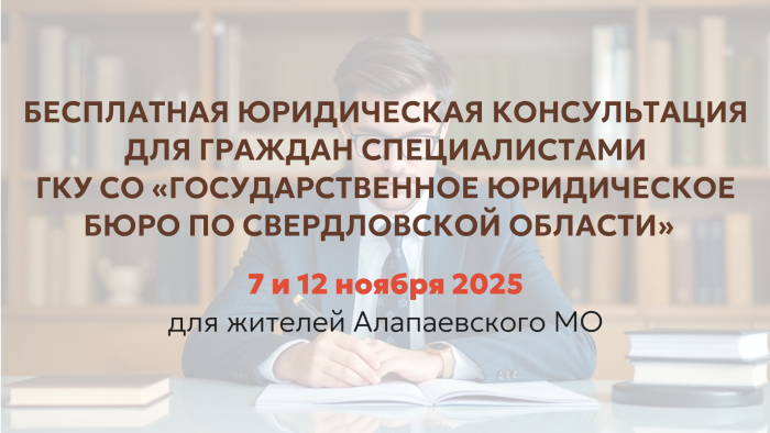 06 Ноября 2025 07.11.2025 и 12.11.2025 Бесплатные юридические консультации для граждан Алапаевского МО